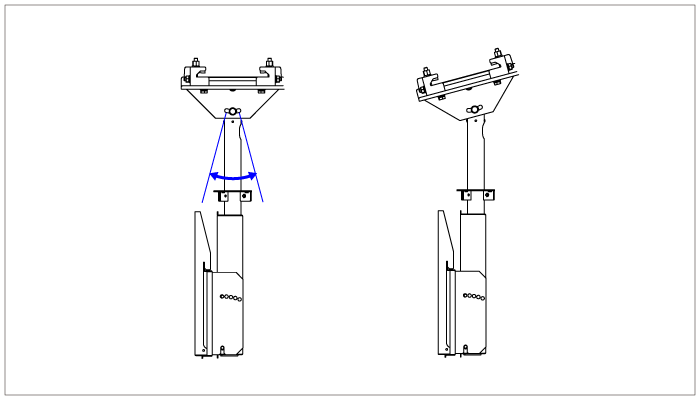 3方向(120°)または4方向(90°)で振れ止めワイヤーを取付可能