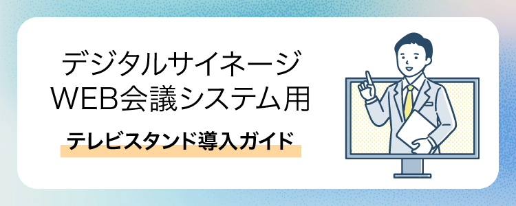 導入コストを抑えられる点や、柔軟なレイアウト変更に対応できる点から、業務用テレビスタンドはサイネージシステムやWEB会議環境の構築において重要な設備の一つとなっています。