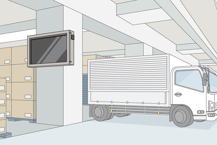 工場内製造現場やトラックヤードではモニターを利用したデジタルサイネージの活用が増えています。 |