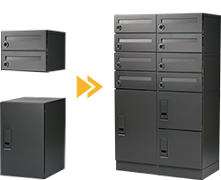 アパートの戸数に合わせて、必要な数だけボックスとポストを縦横自由に組み合わせて設置することができ、カラーも3色からアパートの外観に合わせて選ぶことができます。 -
