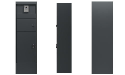 上部のポストは屋外使用に強いダイヤル錠を採用しています。取り付け面からの出っ張りを抑えた薄型デザインです。