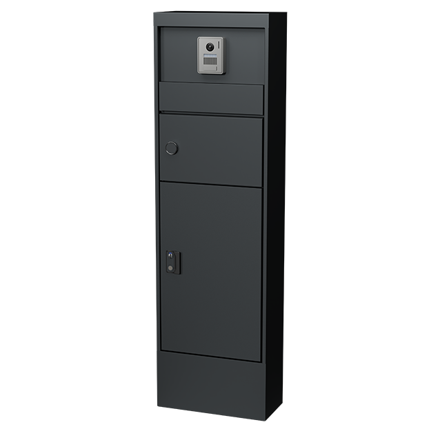 上部のポストは屋外使用に強いダイヤル錠を採用しています。取り付け面からの出っ張りを抑えた薄型デザインです。