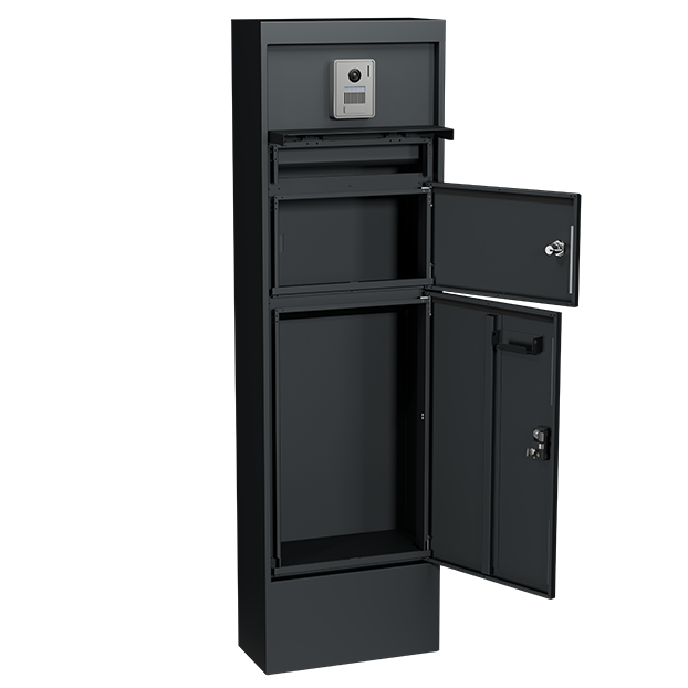 下部の宅配ボックスは、宅配ボックス専用に開発されたロック機構を採用しています。