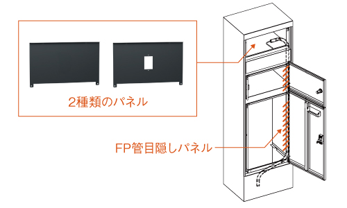 インターホンを取り付ける場合と取り付けない場合のどちらにも対応できるよう、穴加工ありパネルと穴加工なしパネルの2種類を標準で付属しています。さらに、配線時に使用するPF管を隠せる目隠しパネルも同梱しています。設置環境に合わせて部材を選ぶだけで、迷わず簡単に施工できます。