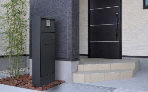 宅配キーパー 機能門柱は、宅配ボックスとポストを標準で一体化し、インターホンや表札は設置環境やライフスタイルに合わせて後から取り付けることができます。また、設置場所の条件や、日常的に受け取る荷物のサイズに応じて、スタンダードタイプとラージタイプの2種類から選べます。