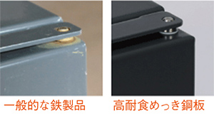 屋外用に考慮して、ボックスはサビが発生しにくい高耐食めっき鋼板使用しています。また、構成部品はサビにくいステンレス製を採用しています。