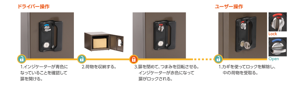 ドライバー、ユーザー共に操作が簡単でありながら、セキュリティーに優れたロック機構です。
